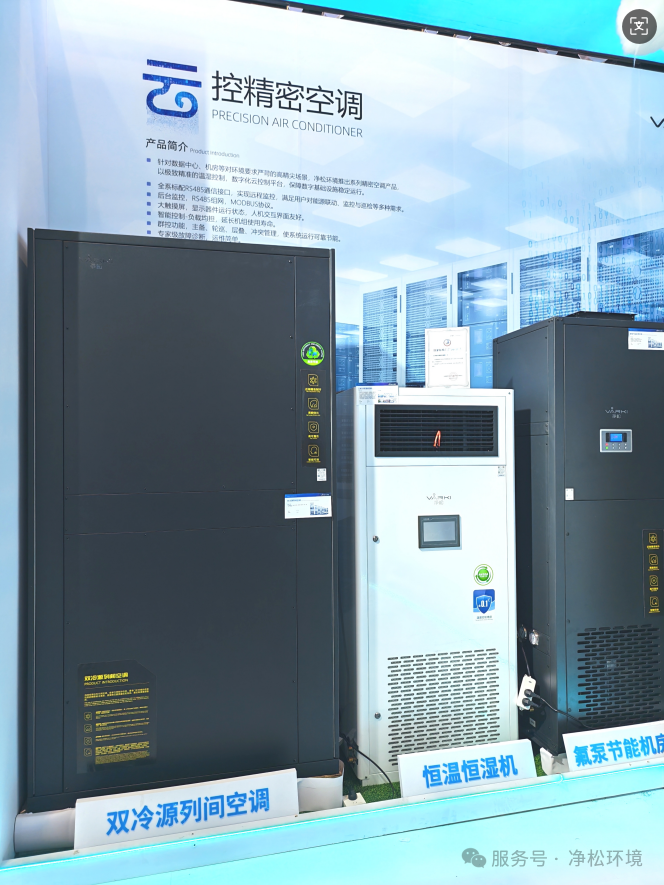在高精尖核心赛道,净松将高精度精密空调作为2026年主力发展产品,推出房级氟泵机房空调、双冷源列间空调等重磅新品。其中,房级氟泵机房空调采用氟泵自然冷技术,双循环独立运行,压缩机零负荷超长待机,大幅降低能耗,是数据中心节能改造的优选方案。双冷源列间空调则采用全氟系统,无水进入机房,避免漏水风险,同时具备全年超长制冷时长,为高密度IT设备提供恒温恒湿的运行环境。