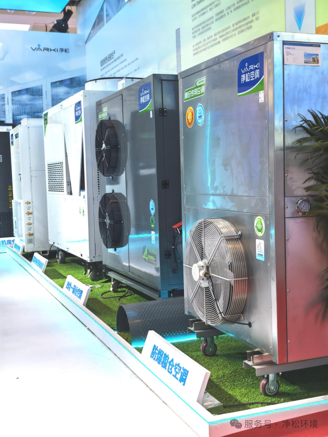 围绕国家粮食安全战略,净松环境在本次制冷展上重磅推出变频四合一粮仓空调,该产品突破传统粮仓空调功能局限,将粮面控温、谷物冷却、机械通风、内环流技术融为一体,实现粮食仓储的精准化、集成化智能控制。